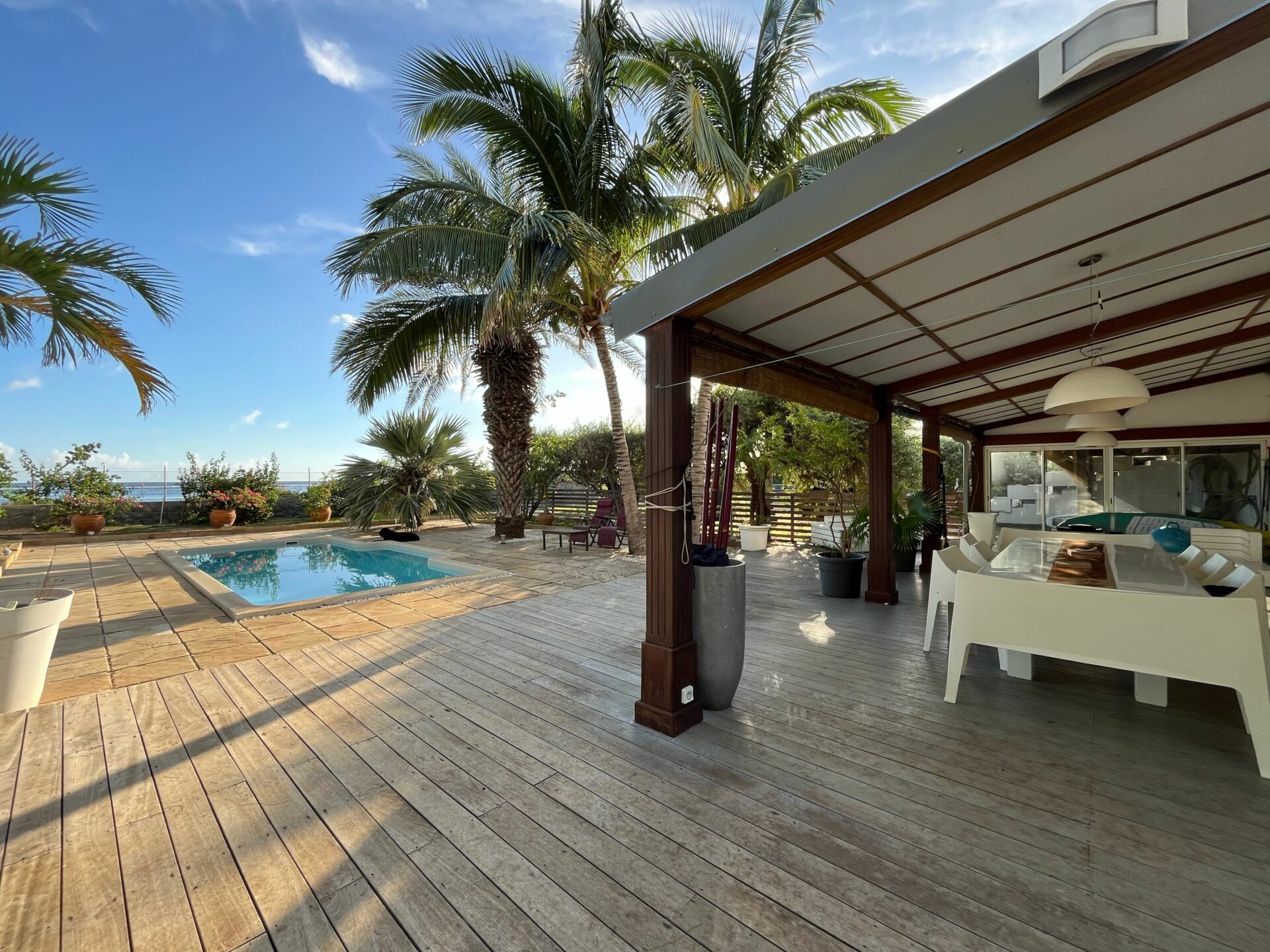 Située face à la mer, dans un cadre de vie idyllique, venez découvrir cette superbe villa T9 en R+2, répartie sur 3 niveaux, construite en 2002, entièrement climatisée, d’une surface habitable d’environ 244 m² avec une terrasse couverte d’environ 43 m², une grande piscine et un jardin d’environ 317m2 avec son accès privatif direct sur la plage.