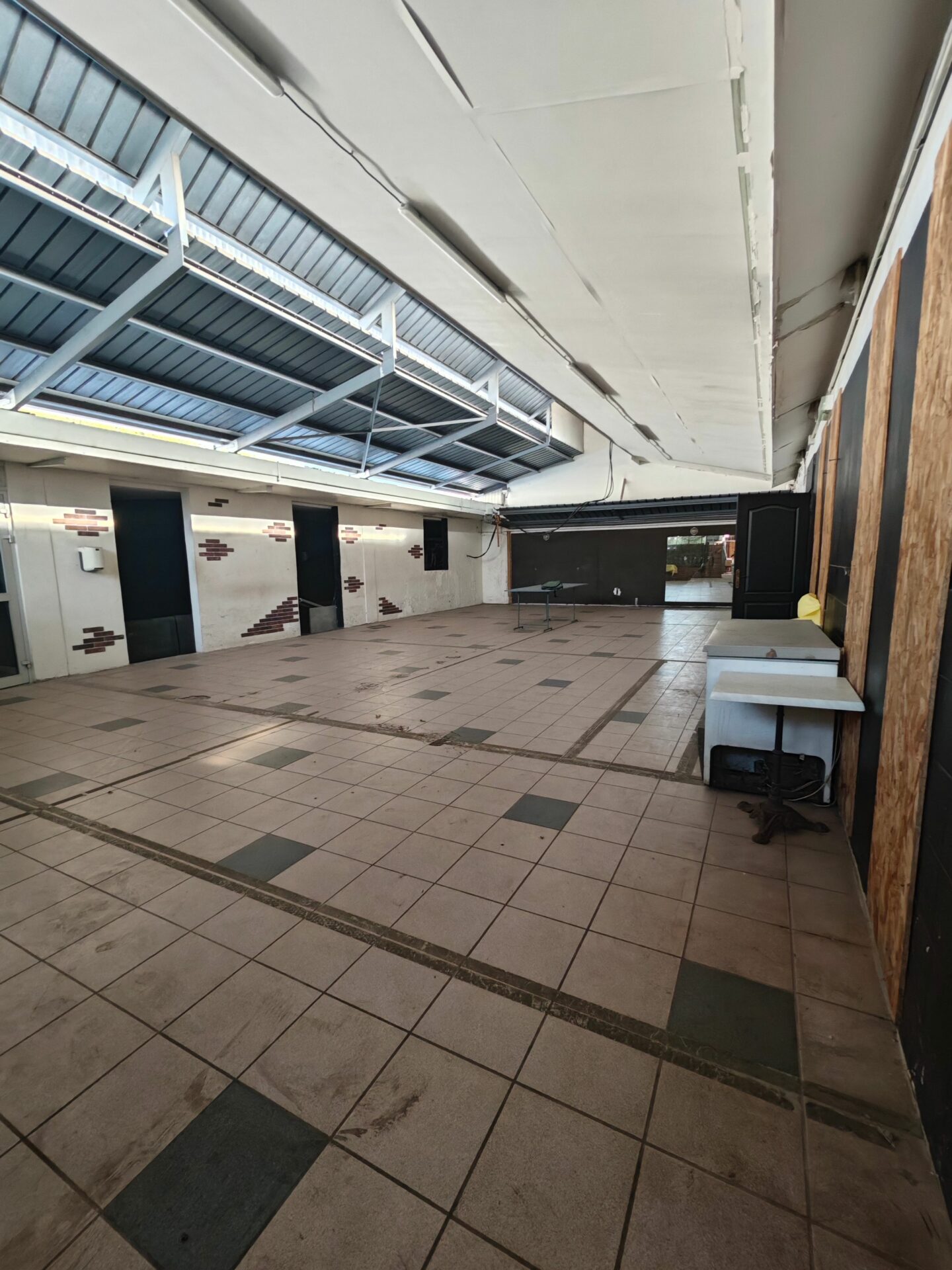 Ce local de 500 m2 est composé d’une salle principale avec wc et de douche, d’une terrasse couverte avec deux salles de stockages ou bureaux.